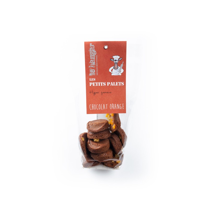Composition : Farine, beurre, sucre, jaunes d’œufs, cubes d’écorces d’orange, poudre d’orange, poudre de cacao, cointreau, sel, levure